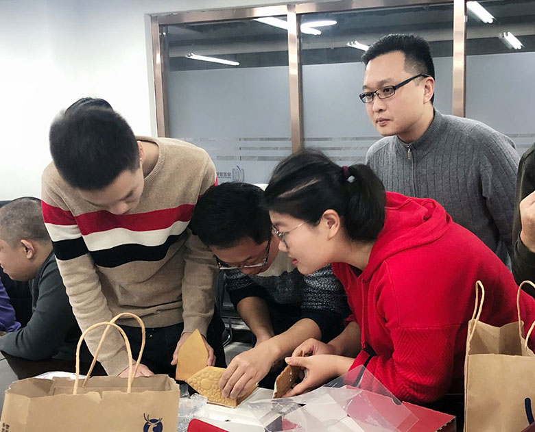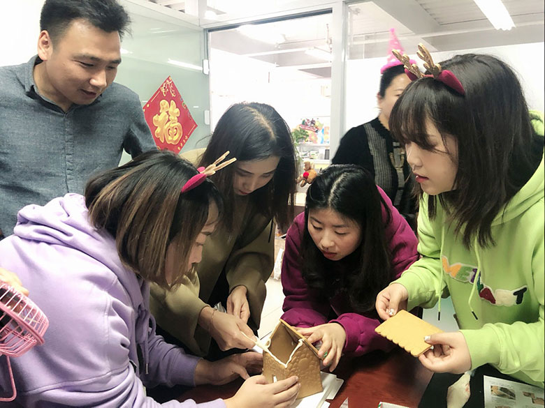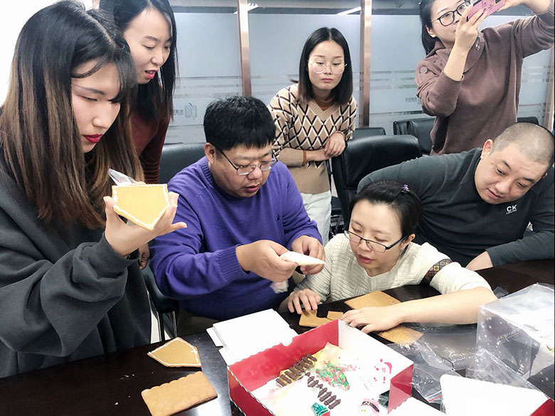 為了加強(qiáng)部門間聯(lián)動(dòng),策劃部和人力行政部伙伴特別設(shè)計(jì)了搭建姜餅屋大比拼活動(dòng),活動(dòng)超級(jí)有趣,小伙伴們分組,自己動(dòng)手,把美味的餅干用糖霜粘起,配上各種糖果和小彩燈,搭建出美輪美奐的小小姜餅屋,共慶美好的節(jié)日。