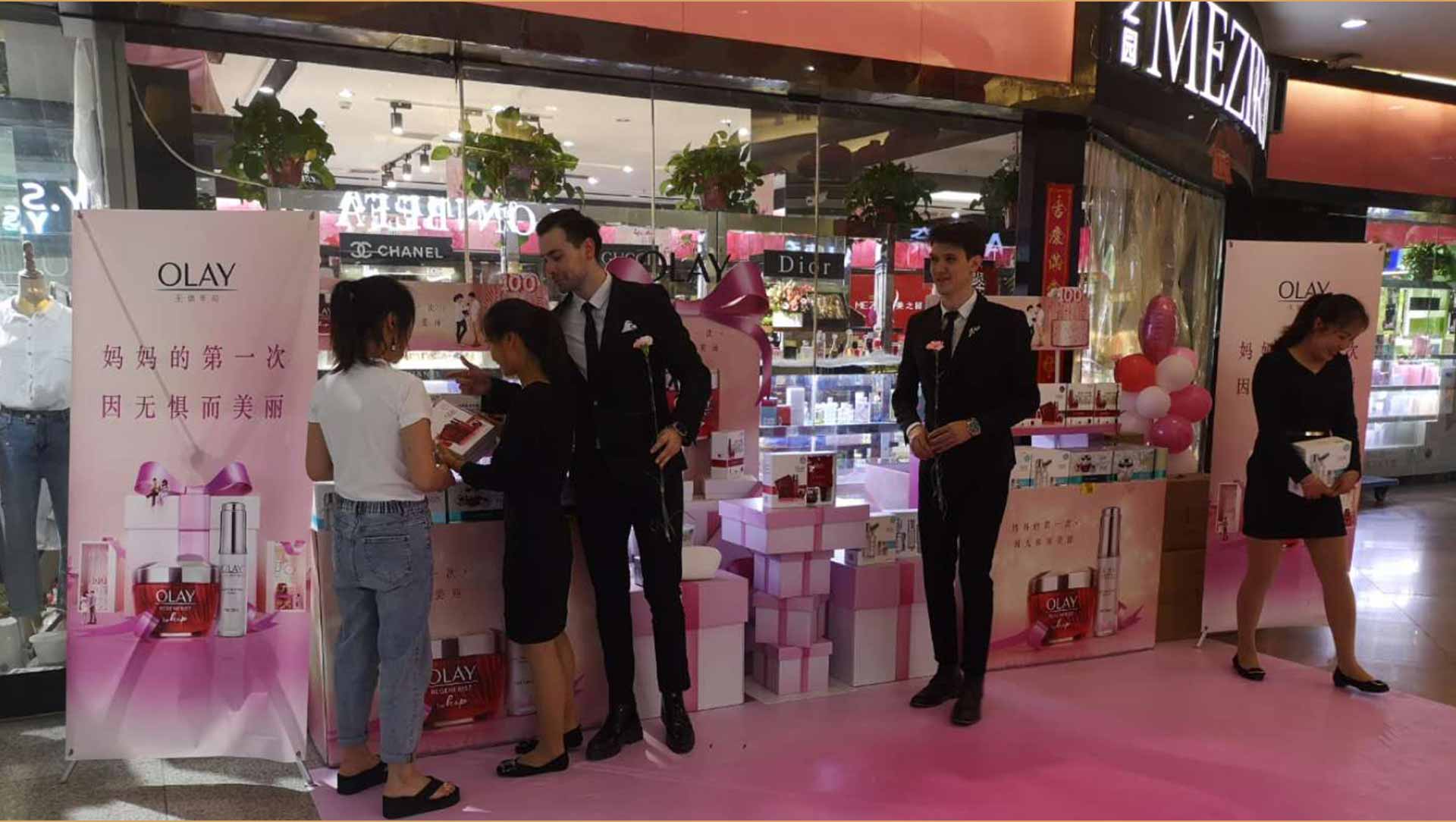 2019年寶潔Olay品牌在分銷商渠道,結(jié)合不同節(jié)假日進(jìn)行推廣,采取各種方式互動(dòng)(外籍帥哥站臺(tái)打Call/專業(yè)護(hù)膚老師教你護(hù)膚/青春活力的舞蹈團(tuán)隊(duì)演繹/優(yōu)雅精美的插畫展示)。宗源全權(quán)負(fù)責(zé)現(xiàn)場(chǎng)執(zhí)行,在母親節(jié)、618活動(dòng)檔期中助力OLAY產(chǎn)品大賣,從門店、ISP都拿到高額激勵(lì)獎(jiǎng)金,獲得品牌客戶好評(píng)!